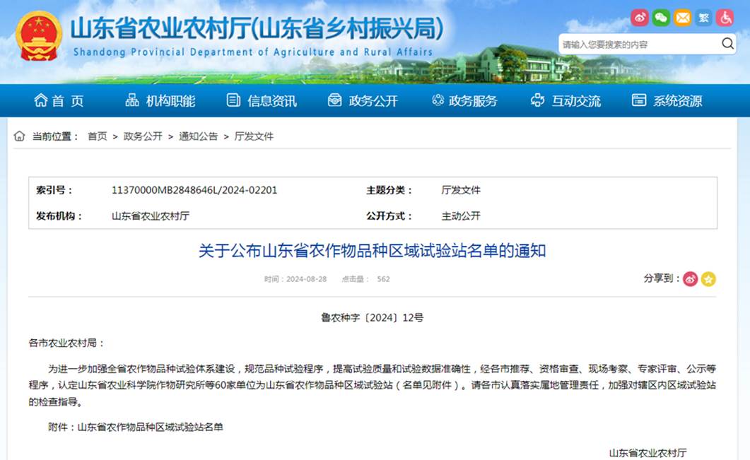 8月28日,山东省农业农村厅公布了山东省农作物品种区域试验站名单,青岛农业大学304am永利集团成功入选。农作物品种区域试验站是山东省为进一步加强全省农作物品种试验体系建设,规范品种试验程序,提高试验质量和试验数据准确性而实施的重要举措,主要开展山东省及品种联合体小麦、玉米、大豆、水稻、棉花等主要农作物新品种区域试验、生产试验任务。